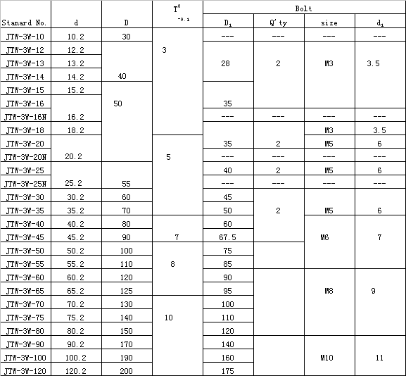 JTW 止推垫片标准尺寸